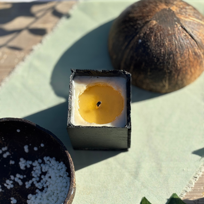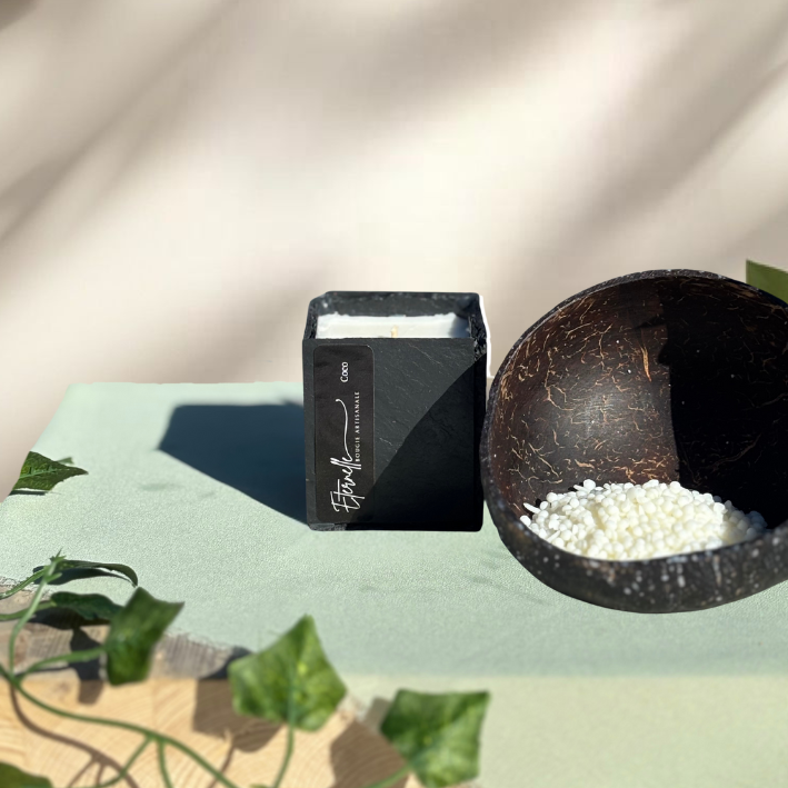 Chaque bougie Éternelle est une création unique, façonnée entièrement à la main en France. La cire végétale de soja, le parfum de Grasse garanti sans CMR ni phtalates, la mèche en coton et la pyrite délicatement intégrée en font une expérience sensorielle rare. L’ardoise, taillée à la main par nos soins, rend chaque bougie véritablement unique : aucune n’est identique. Nous sommes fiers d’être les seuls à proposer ce savoir-faire artisanal.