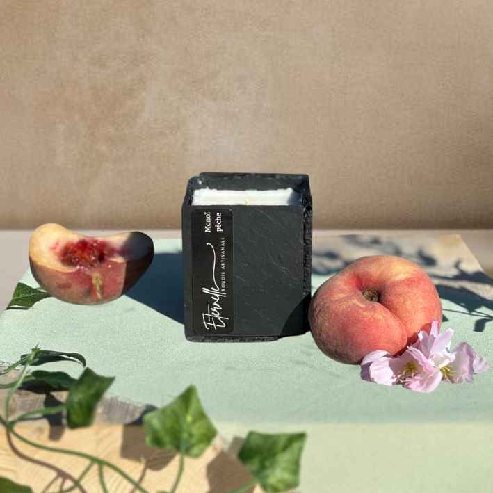 Une fragrance solaire et fruitée, où la douceur juteuse de la pêche se combine à l’exotisme du monoï, évoquant les plages ensoleillées et les instants de détente estivale.