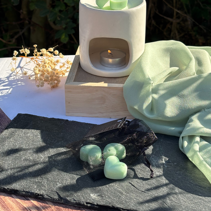 Chaque fondant parfumé Éternelle est une création artisanale, façonnée à la main en France. Composés de cire végétale d’olive pilier et de parfums de Grasse garantis sans CMR ni phtalates, nos fondants offrent une fonte homogène et une diffusion parfumée délicate et durable. Coulés avec soin dans des moules raffinés, ils se distinguent par leurs formes élégantes et leur finition unique, témoignant d’un véritable savoir-faire artisanal.